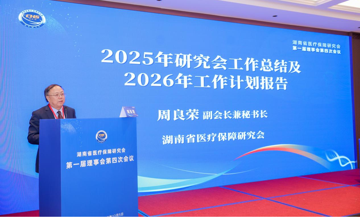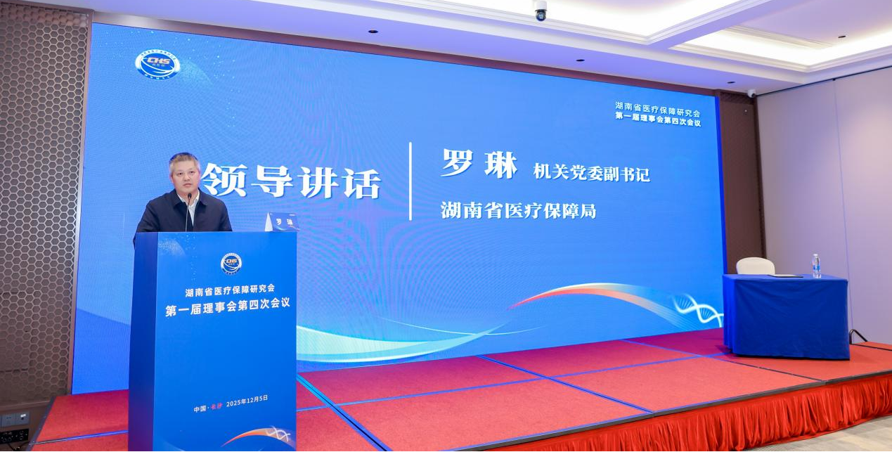 2025年12月5日下午,湖南省医疗保障研究会第一届理事会第四次会议在长沙隆重举行。会议以总结2025年工作,表彰先进,同时共同谋划2026年主要工作。中国医疗保险研究会技术标准部副主任柳雯馨、湖南省医疗保障局机关党委副书记罗琳、中山大学药学院医药经济研究所所长宣建伟,以及研究会支部书记王秧球等领导嘉宾、各市州医保局联络员、全体理事齐聚一堂,副会长杨土保主持会议。