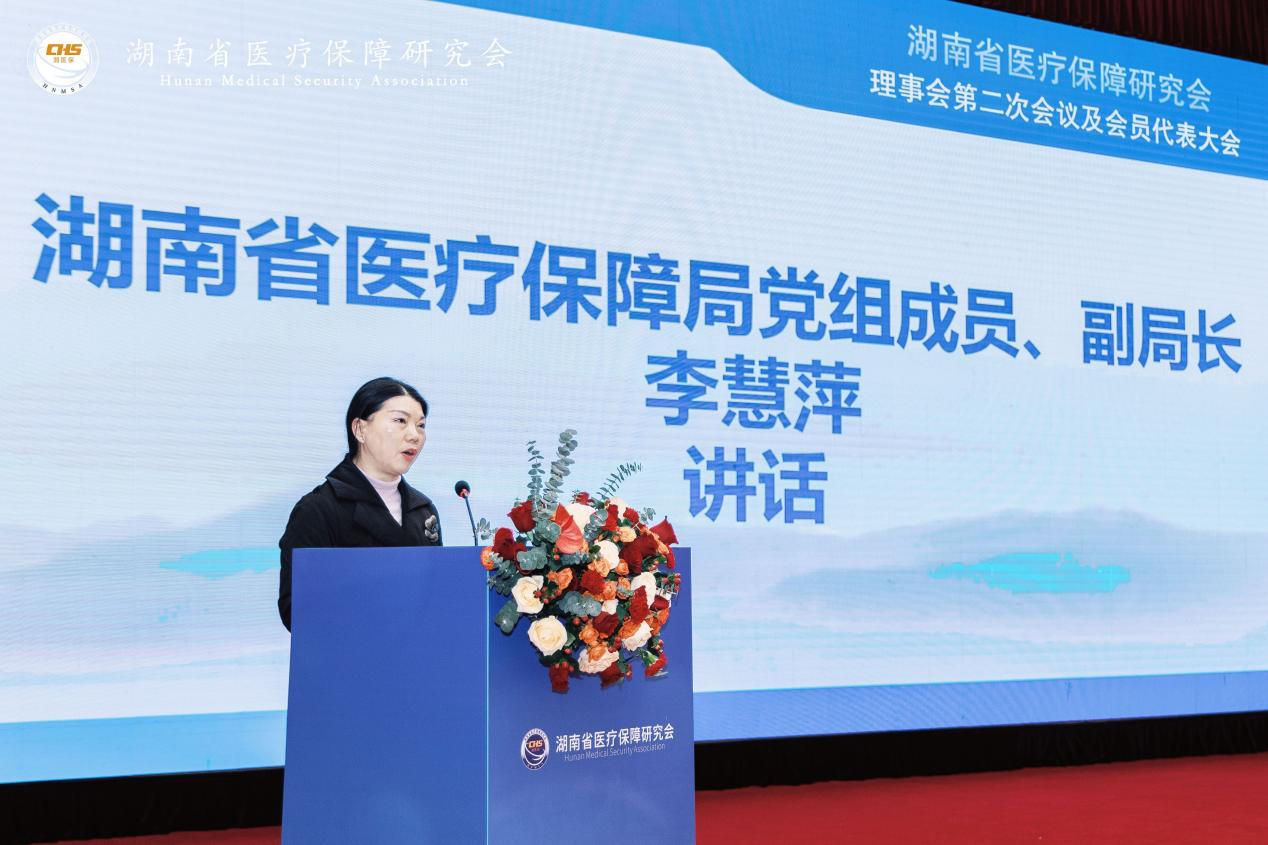最后,湖南省医疗保障局副局长李慧萍做了讲话,她强调,研究会要坚持党建引领,明确研究方向,提升服务能力,积极发挥智囊作用。她希望研究会通过学术研究和政策解读,不断推动全省医疗保障事业高质量发展。