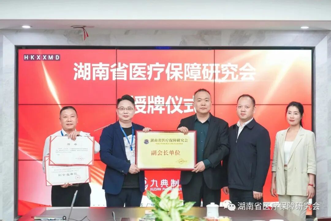 10月27日上午,湖南省医保研究会在湖南九典制药股份有限公司举行副会长单位授牌仪式。