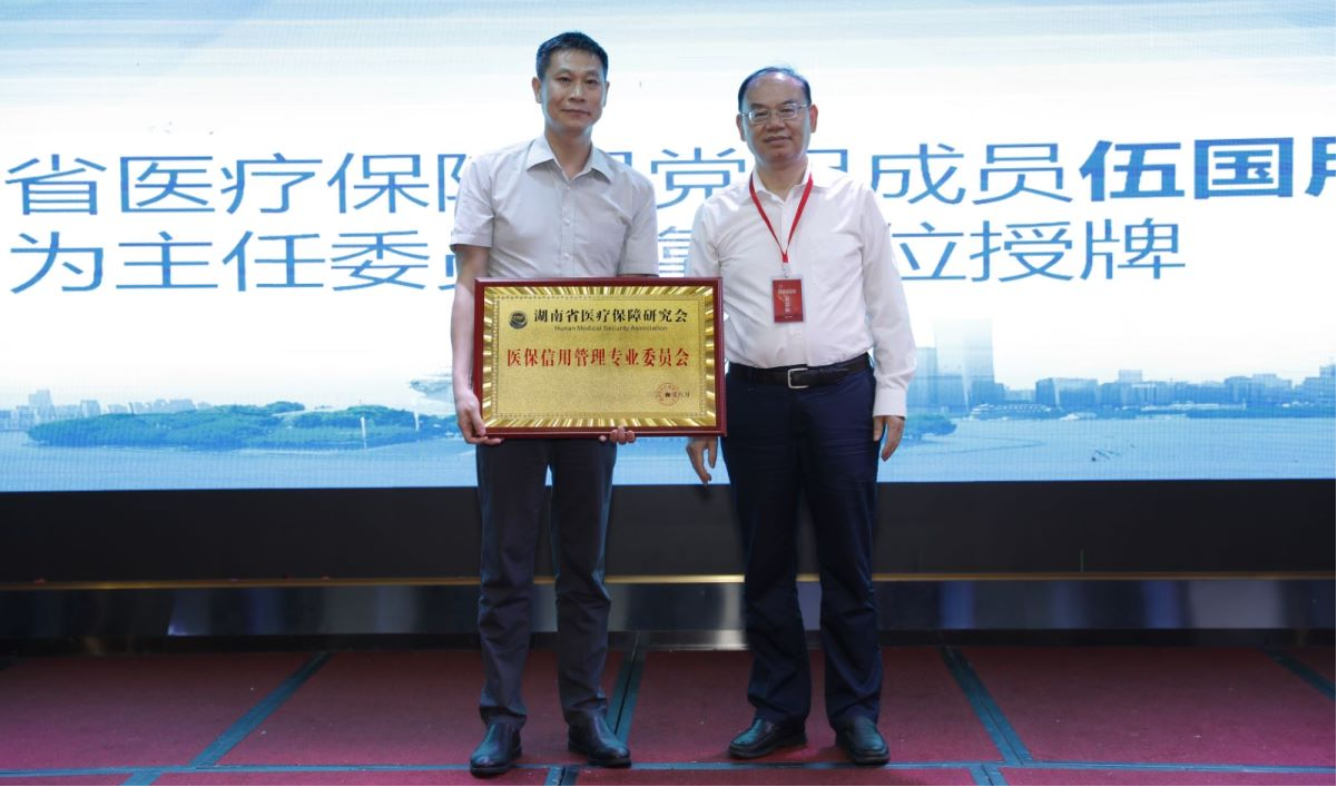 省医疗保障局党组成员伍国用为专业委员会挂靠单位湘潭大学法学学部信用风险管理学院授牌。