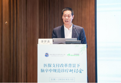 岳阳市中心医院院长李罗清致辞,并表示医保支付改革在脑卒中诊疗领域的重要性,做好相关病种精细化运营管理,既要保障临床疗效患者满意度,又要合理进行成本控制,实现医院的高质量发展。