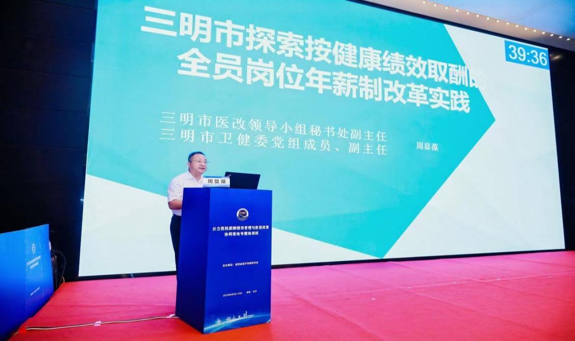三明市医改办主任周显葆以《三明市探索按健康绩效取酬的全员岗位年薪制实践》为题首开报告,系统介绍了三明通过“全员目标年薪、工分制考核、健康结果付费”等制度创新,实现医生收入与医疗质量、居民健康水平挂钩的改革路径,引发与会代表的强烈反响。